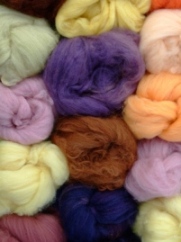 We use both wool,alpaca,silk and plant fibres in our batts all of which can be either dyed or left in their natural colour.